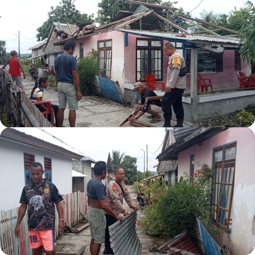 Aksi Humanis Bhabinkamtibmas Manglusi Ikut Gotong Royong Bantu Warga Perbaiki Atap Rumah