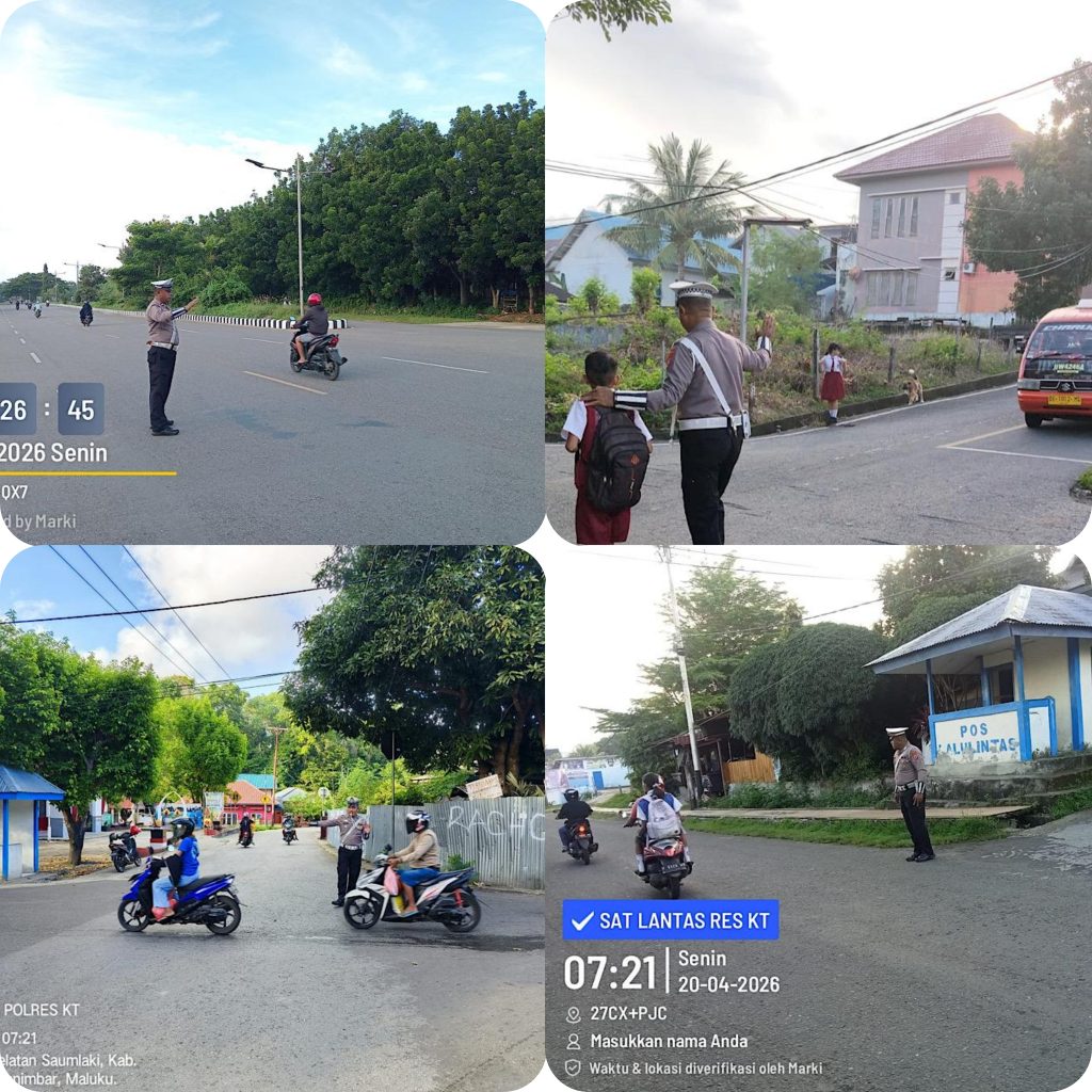 Sejak pukul 06.30 WIT, Personel Sat Lantas telah tersebar di berbagai persimpangan jalan, area perkantoran hingga kawasan Sekolah. Kehadiran para Petugas Kepolisian di lapangan bertujuan untuk memantau langsung situasi arus kendaraan serta mencegah terjadinya kemacetan maupun kecelakaan lalu lintas, Senin (20/04/26).