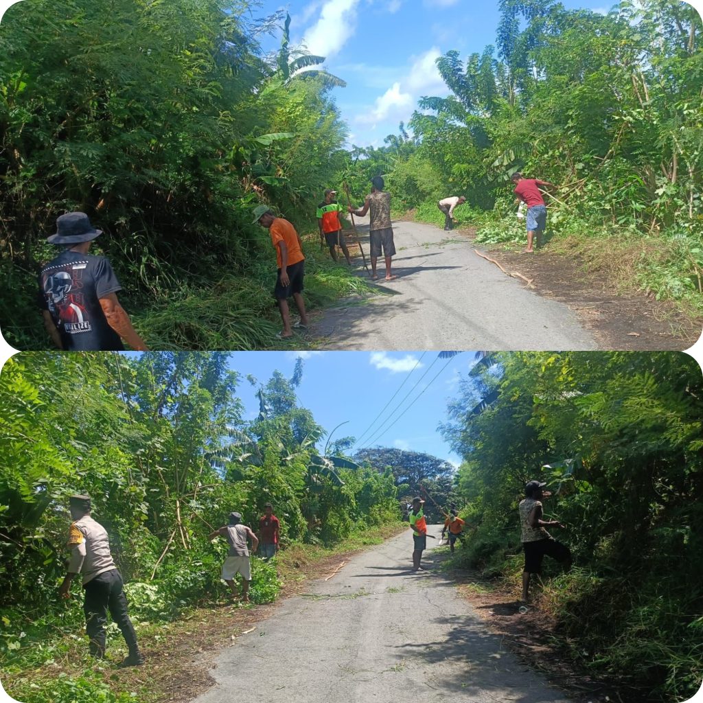 Ciptakan Lingkungan Bersih, Bhabinkamtibmas Watmuri Bersama Warga Gotong Royong Bersihkan Jalan Masuk Desa