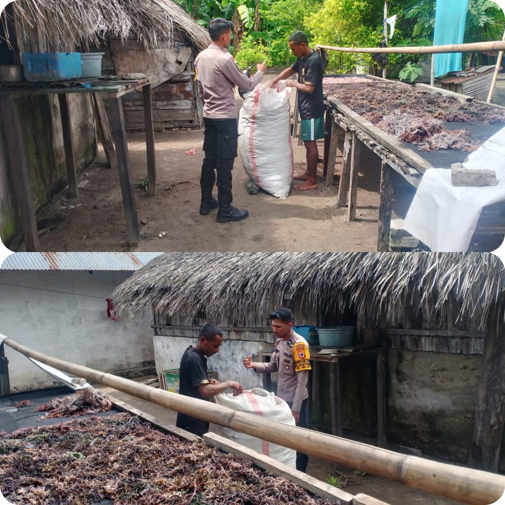 Dukung Ketahanan Ekonomi Pesisir, BhabinKamtibmas Namtabung Sambangi Pengusaha Rumput Laut