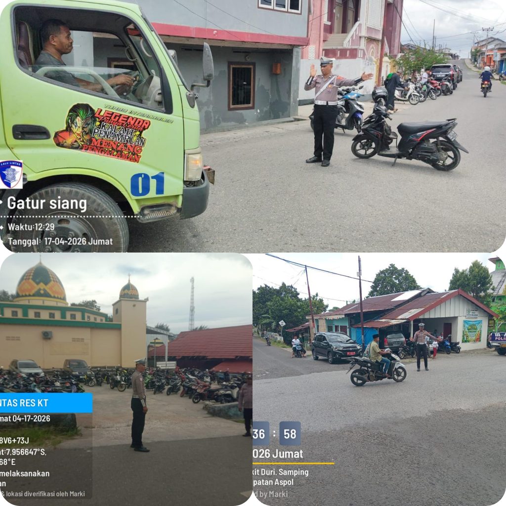 Secara rutin dan kontinyu, Personel Satuan Lalu Lintas dikerahkan untuk melaksanakan pengamanan serta pengaturan arus lalu lintas di sejumlah Masjid yang ada di wilayah Kota Saumlaki, Kecamatan Tanimbar Selatan, Kabupaten Kepulauan Tanimbar, pada Jumat (17/04/26).