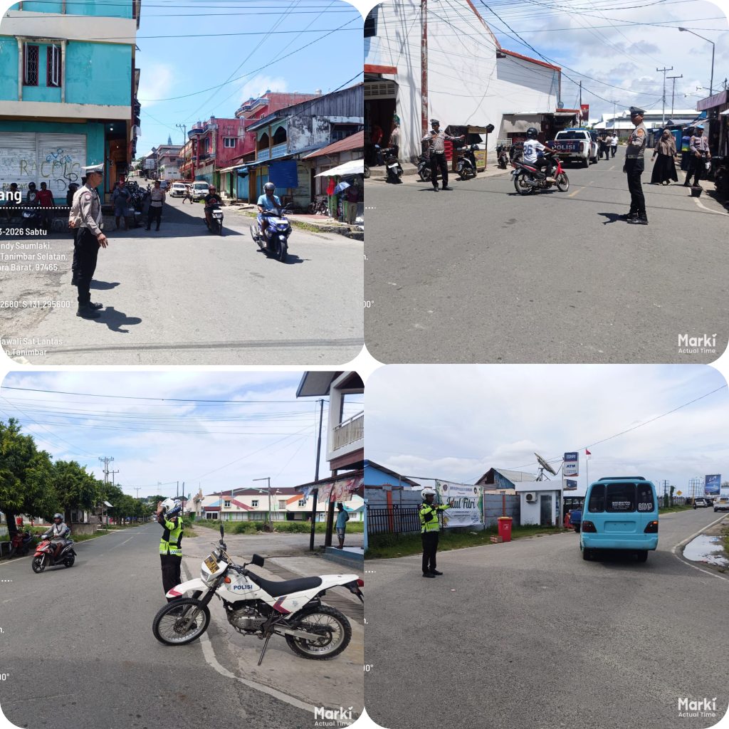 Saumlaki.wartatanimbar.com – Personel Sat Lantas Polres Kepulauan Tanimbar terus berkomitmen memberikan pelayanan prima kepada Masyarakat dengan mengintensifkan kegiatan penjagaan dan pengaturan (Gatur) arus lalu lintas pada jam-jam sibuk siang dan sore hari di sejumlah titik strategis wilayah Kota Saumlaki.