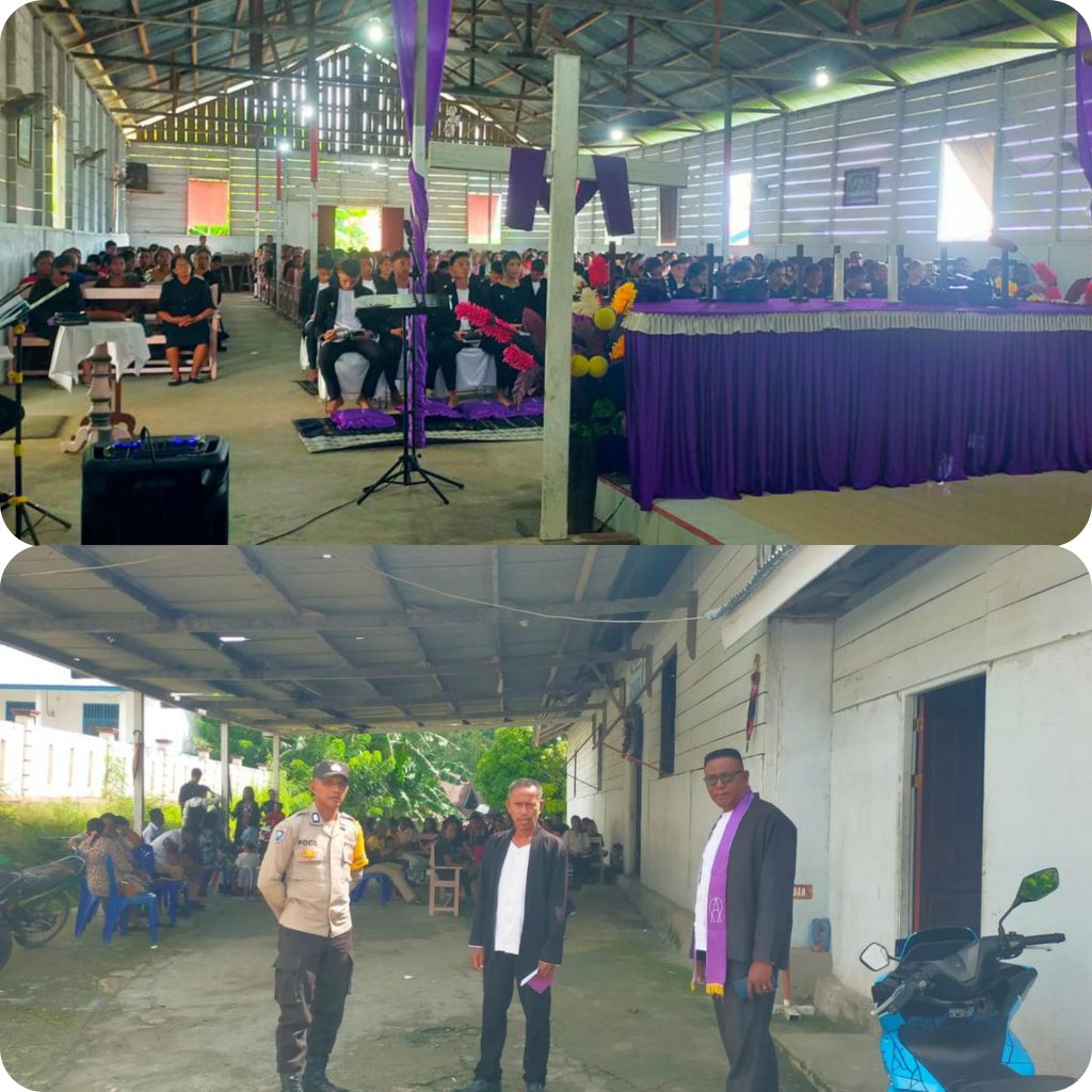 “Kami memastikan seluruh rangkaian ibadah, terutama momen Peneguhan Sidi baru berjalan khidmat tanpa gangguan. Bhabinkamtibmas harus hadir sebagai pelindung dan pelayan Masyarakat” tegas Kapolsek.