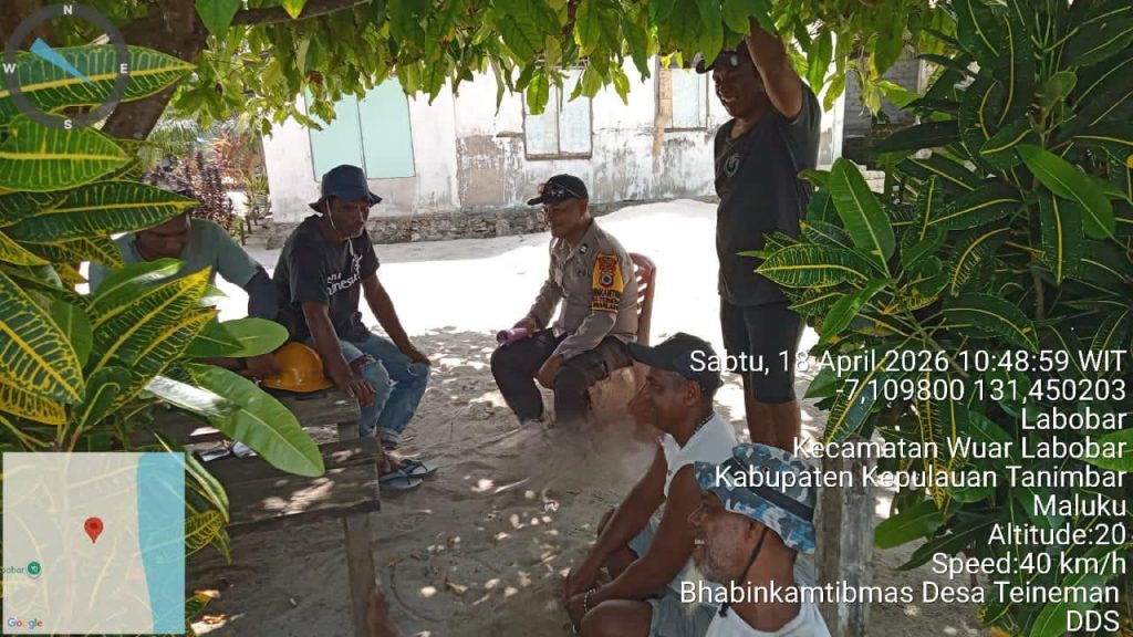 Saumlaki.wartatanimbar.com – Dalam menjaga situasi keamanan dan ketertiban Masyarakat (Kamtibmas) yang kondusif, Bhabinkamtibmas Desa Teineman, Aiptu Syukur, melaksanakan kegiatan sambang Warga di Desa Teineman, Kecamatan Tanimbar Wuarlabobar, Kabupaten Kepulauan Tanimbar, Sabtu (18/04/26).