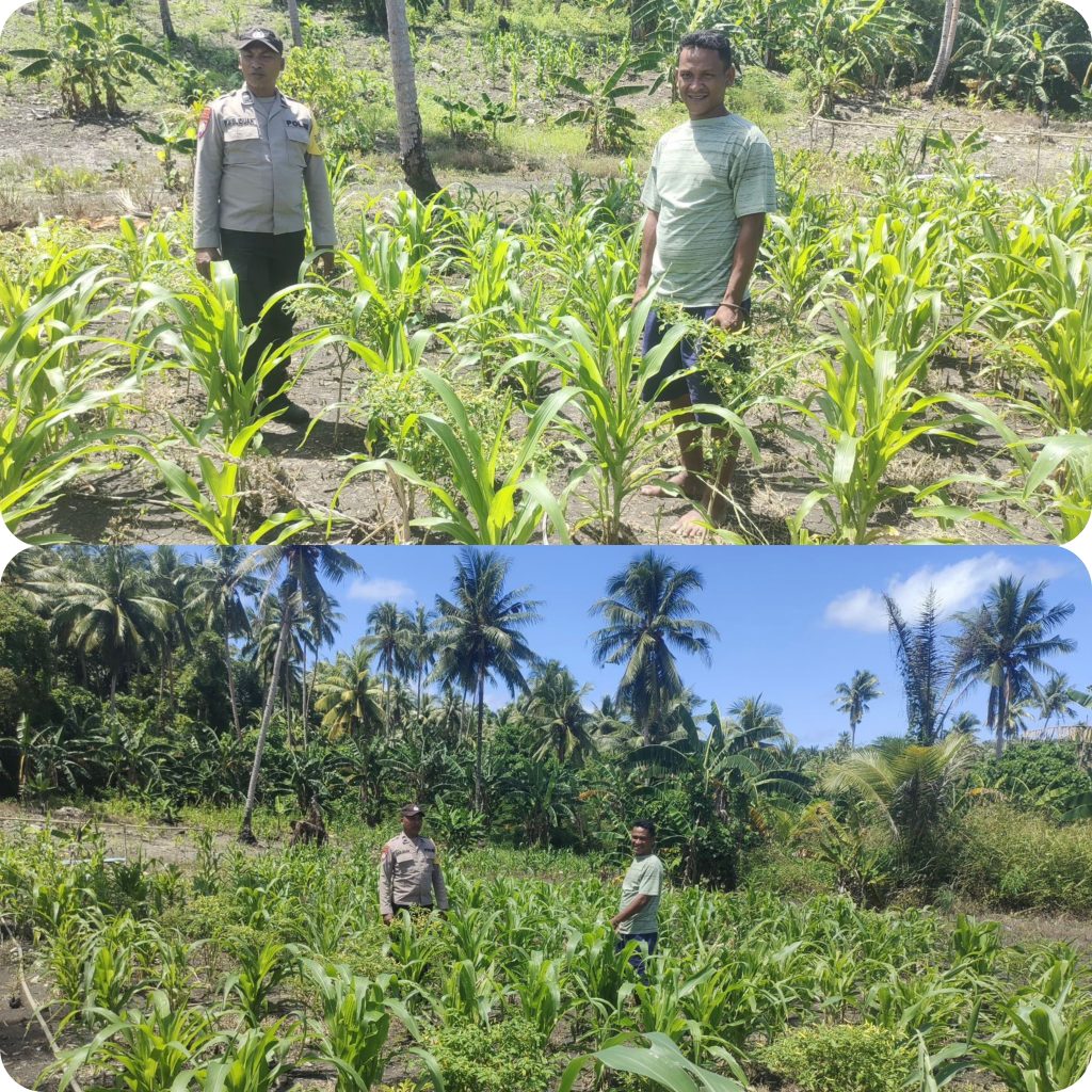 Tingkatkan Ketahanan Pangan, Bhabinkamtibmas Lorwembun Pantau Lahan Jagung Warga