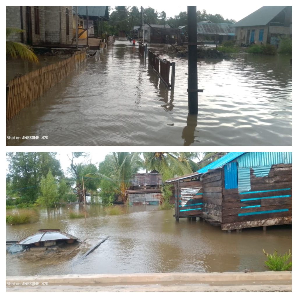 Desa Awear Rumngevur, Kecamatan Wuarlabobar, Kabupaten Kepulauan Tanimbar, Provinsi Maluku, terdampak banjir akibat kombinasi curah hujan tinggi dan naiknya air laut. Air laut merendam pemukiman warga hingga masuk ke dalam kampung, membuat aktivitas sehari-hari warga terganggu. Warga mengaku tidak dapat melakukan kegiatan rutin dan merasa tidak bisa berbuat apa-apa menghadapi kondisi ini, Senin 22/3/2026.